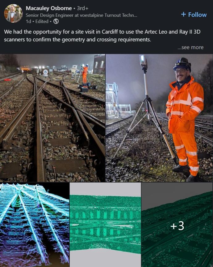 Početkom 2024. na LinkedInu srećemo još jedan primer iz prakse gde su 3D skeneri korišćeni za kontrolu kvaliteta železničke infrastrukture.