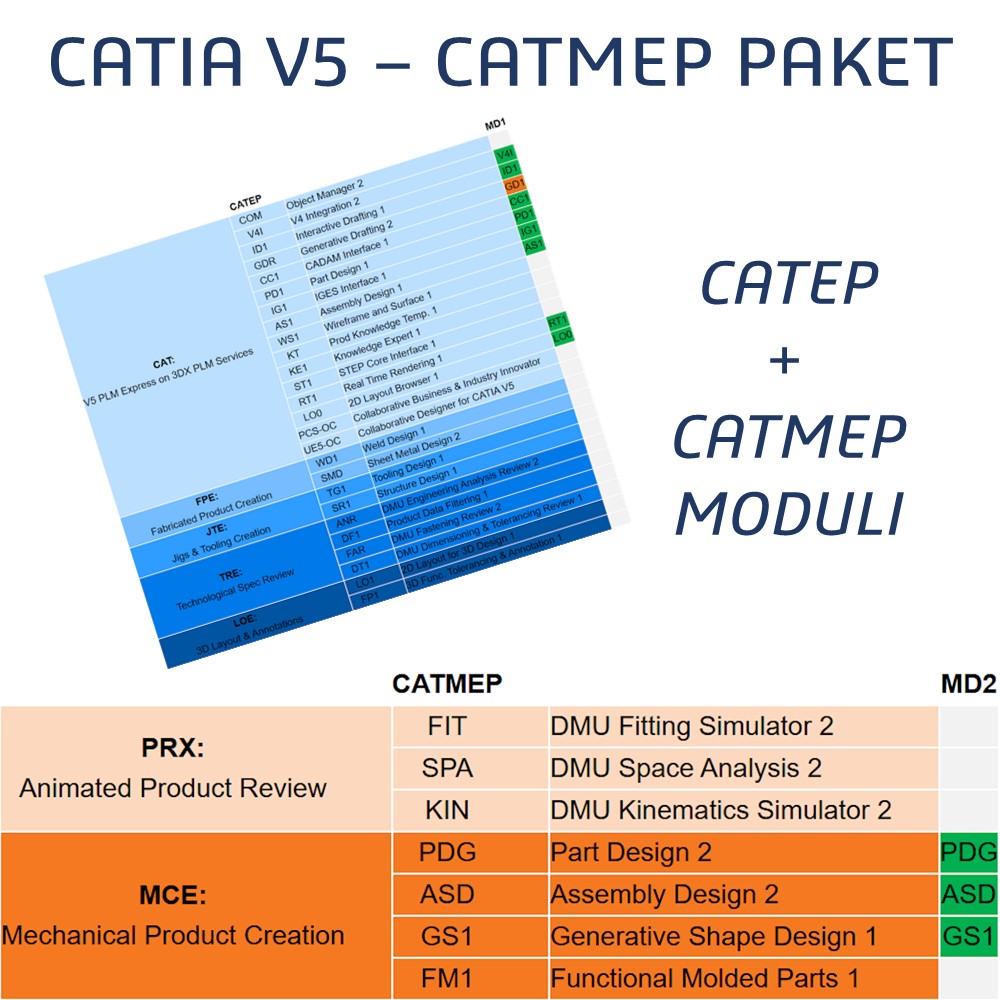 CATIA V5 Mechanical Engineer Excellence (CATMEE) konfiguracija sadrži sledeće module po veoma konkurentnoj ceni: