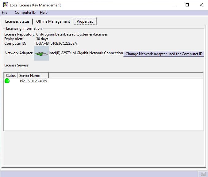 U kartici Properties možemo videti da li je izabrana mrežna kartica. U slučaju da nije, potrebno je levim klikom tastera kliknuti na Change Network Adapter used for Computer ID i odabrati.