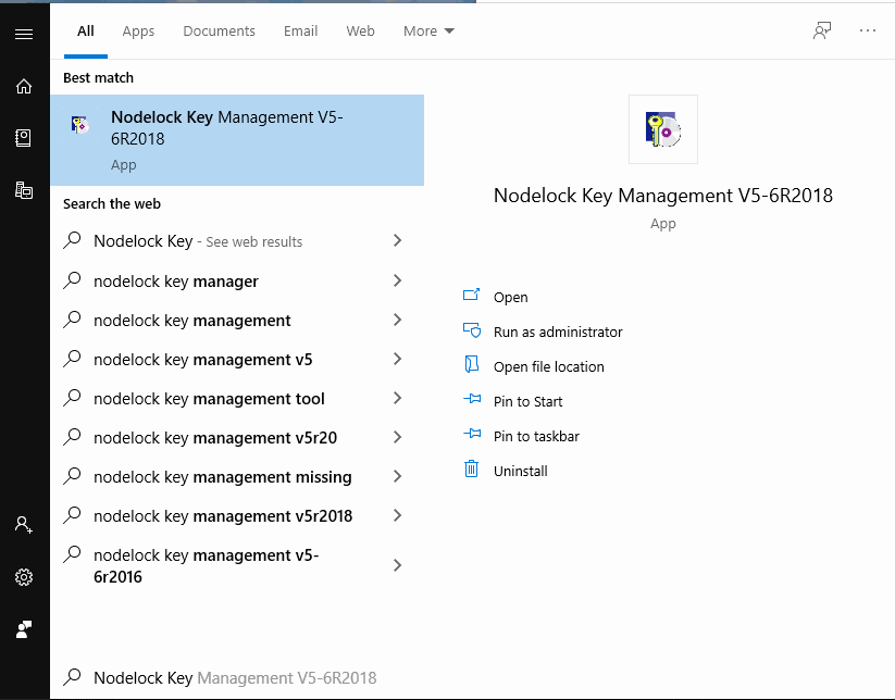 Potrebno je proveriti da li je izabrana mrežna kartica. Pronađemo Nodelock Key Management i pokrenemo levim klikom tastera.