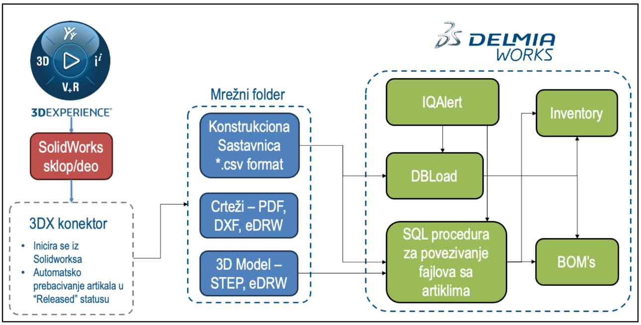 Item master i Inventory Control u DelmiaWorks‑u su centralna baza podataka za sve artikle i magacinske transakcije – od sirovina i pomoćnog materijala, preko poluproizvoda i gotovih proizvoda, do pakovanja, VMI i outsource zaliha. Na osnovu podešavanja u Item masteru sistem zna kako da prati količine, lokacije, lot i serijske brojeve, kako da računa troškove i kako da poveže svaki artikal sa BOM‑om, proizvodnjom, kvalitetom, WMS‑om i finansijama, dok Inventory Control deo obezbeđuje da svako pomeranje i transakcija budu on‑line, kroz jedinstveni transakcioni log.