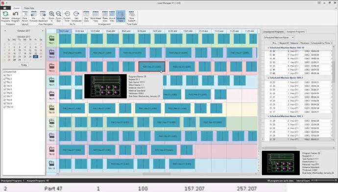 - Poseduje funkciju "real-time load balancing" koja efikasno raspoređuje rad između mašina i sekundarnih operacija. Bitno je napomenuti da se mašine sličnih tehnoloških mogućnosti svrstavaju u grupe i da SigmaNEST u pozadini pravi CNC programe za sve mašine iz grupe, pa ako sistem planiranja – Load Manager rasporedi program (krojnu listu) na drugu mašinu, softver sam prosleđuje mašini odgovarajući program bez intervencije čoveka.