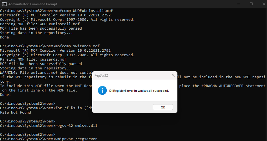 Kada se pojavi prozor sa porukom, kao na slici ispod, ići na OK i zatvoriti Command Prompt aplikaciju.