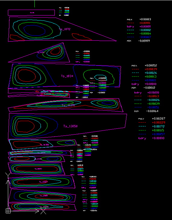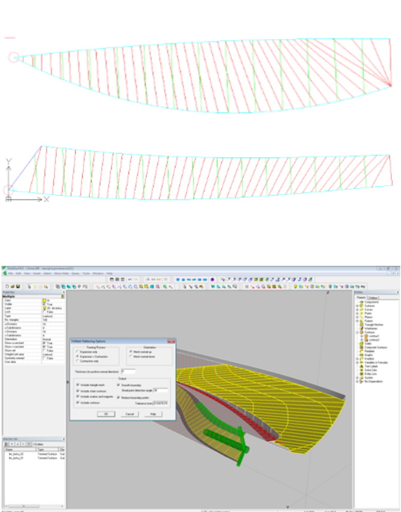 Paralelno sa definisanjem rebara i pregrada, vrši se podela oplate sekcije na table, ofsetovanjem za debljinu lima i trimovanjem mesta na kojima ima kolizije.