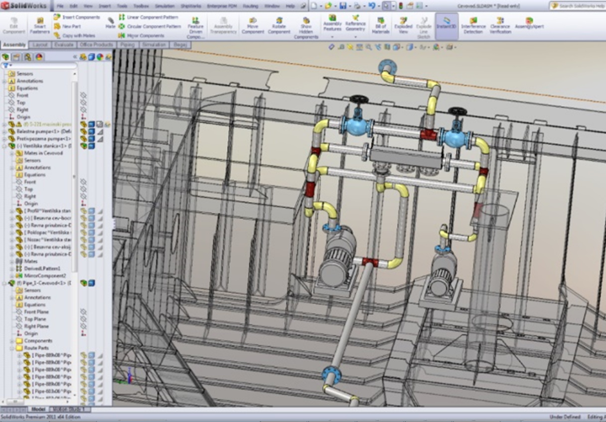 Paralelni rad svih službi (trup, cevovodi, bravarija, oprema, enterijer...), kroz SolidWorks Enterprise PDM sistem