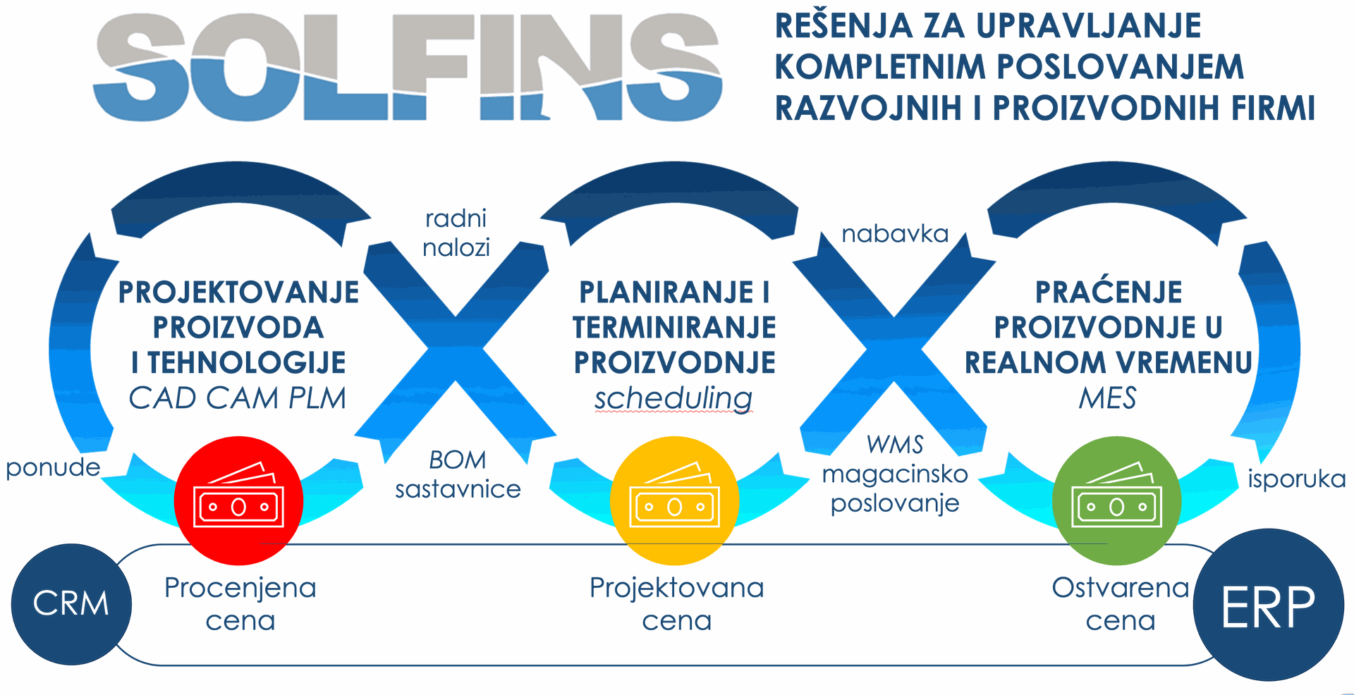 Firma Solfins ima jednstvenu poziciju na tržištu, jer razvojnim i proizvodnim firmama može da pruži konsalting i softverska rešenja od ideje za novi proizvod, kroz njegov razvoj i planiranje razvojnih aktivnosti, izradu tehnologije za proizvodnju do kasnijeg planiranja i praćenja proizvodnje i svih ostalih poslovnih procesa. Rešenja za naše klijente ostvarujemo kroz industrijsko znanje i poznavanje proizvodnih procesa, ali i kroz vrhunske softverske alate: